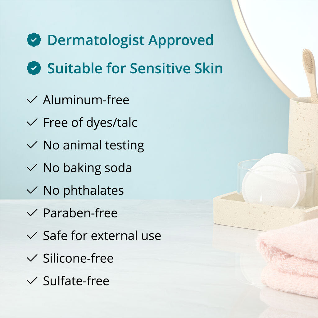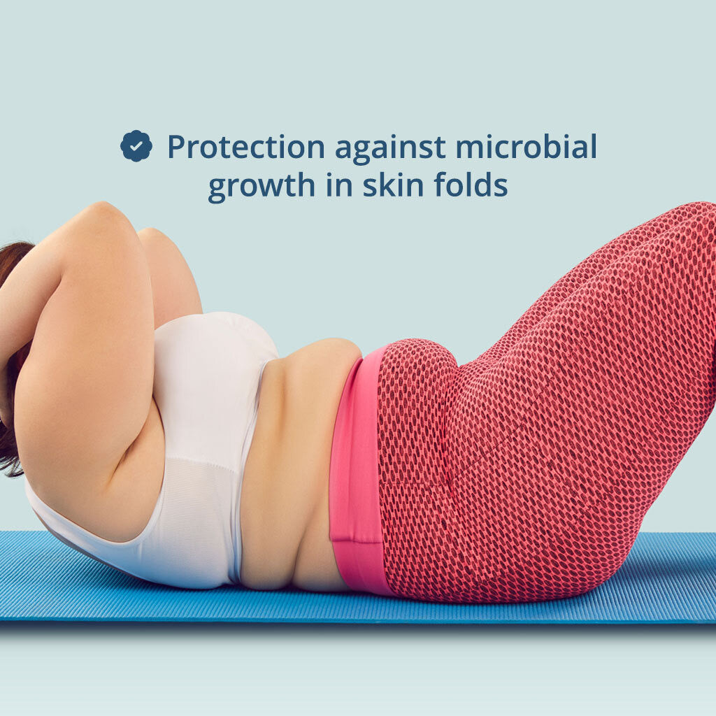 Use it on the vulnerable skin of the groin, feet, underarms, and skin folds to inhibit glucose-dependent microbial growth, easing itch, odor, and discomfort.